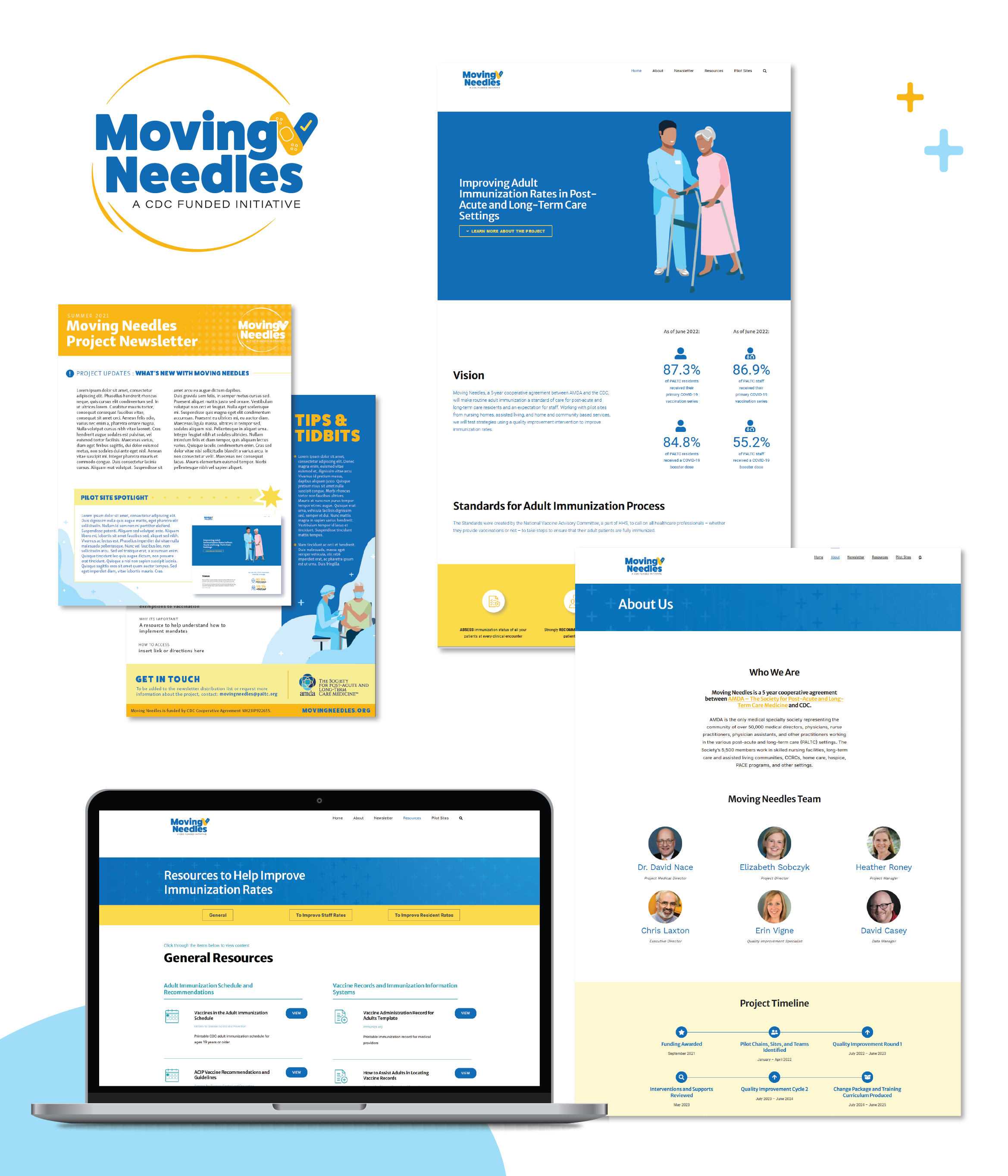With AMDA and Moving Needles, they needed a logo and a website in addition to some branded items for their new vaccination initiative in collaboration with the CDC. I worked with the client to build out their logo concept in addition to their website and the overall brand that is used throughout all their print and digital material. The website is built out using Wordpress and some additional custom code. I also worked on a newsletter concept that is sent out quarterly and is displayed with the site here.
